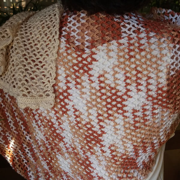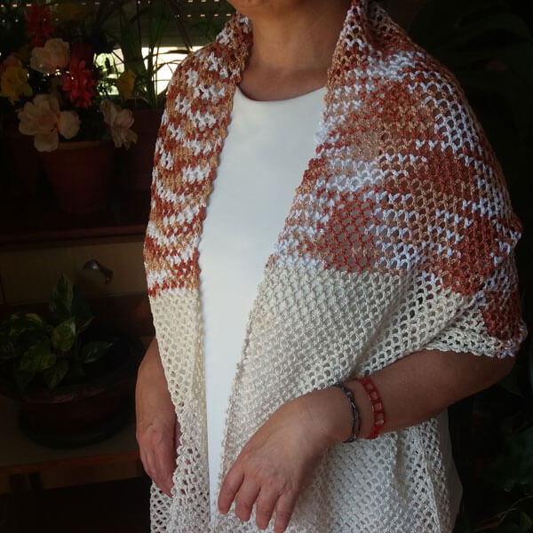 Este chal 2 colores esta confeccionado a ganchillo con punto muy calado e hilo 100% de algodón.