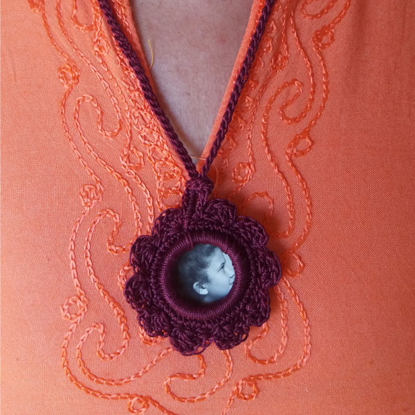 El colgante broche camafeo esta realizado en hilo 100% de algodón puro en ganchillo adaptable tanto como colgante como camafeo.